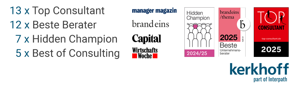 For 25 years, Kerkhoff Consulting has been fulling the needs of our midsized customers with individual solutions that we implement together. As the experts in purchasing, Kerkhoff Consulting sustainably increase thier customers' earnings contribution by optimizing processes and costs along the value chain. Kerkhoff supports preparation of employees and processes of the customers for the requirements of tomorrow, while taking them along the way.